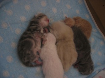 Mit ca. 4-6 Wochen beginnen sie alleine zu fressen, werden aber erst in der Zeit zwischen der 8. und 10. Woche von der Mutter entwöhnt.